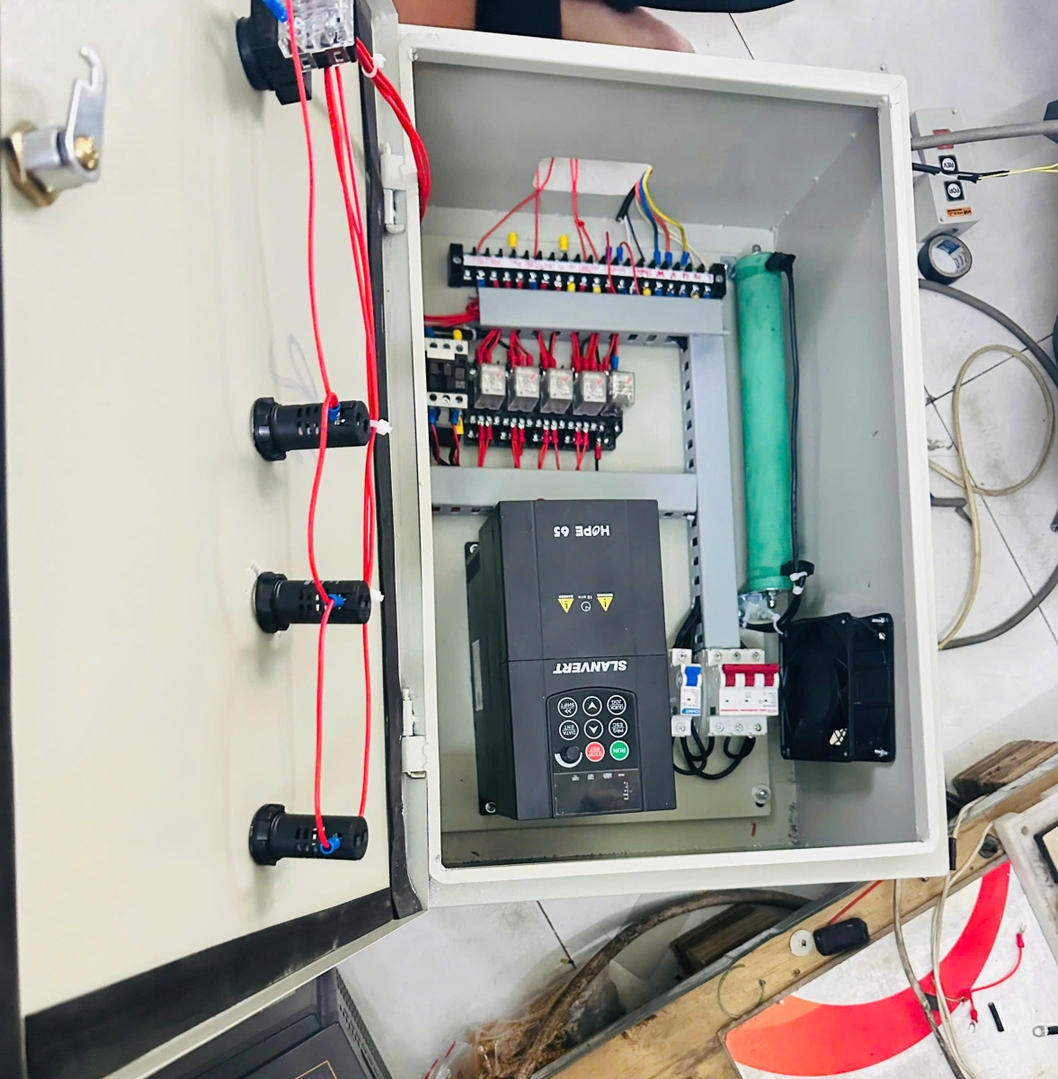 Tủ điện biến tần Senlan trong xưởng s ...